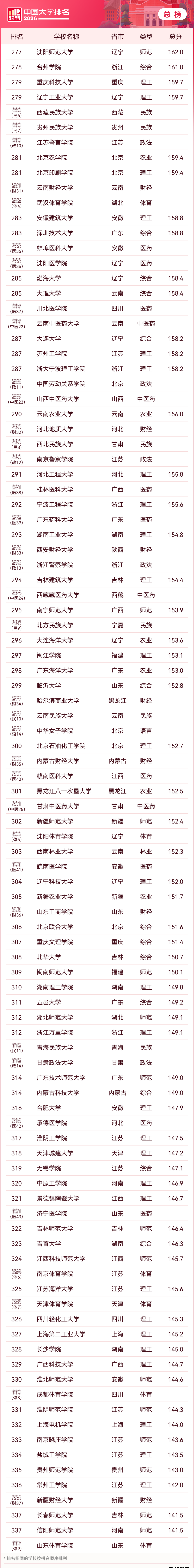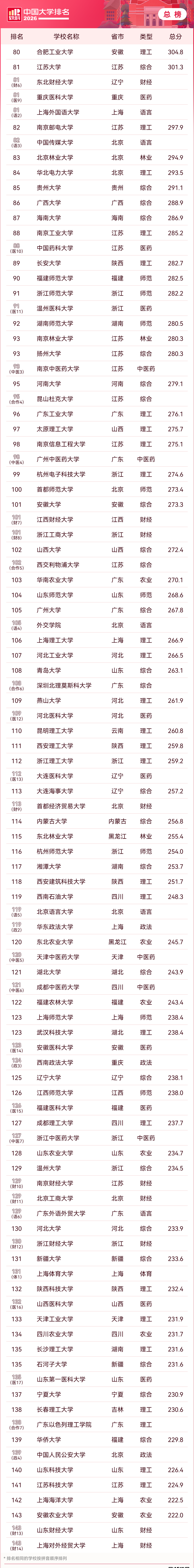 一、2026年中国大学排行榜最新
