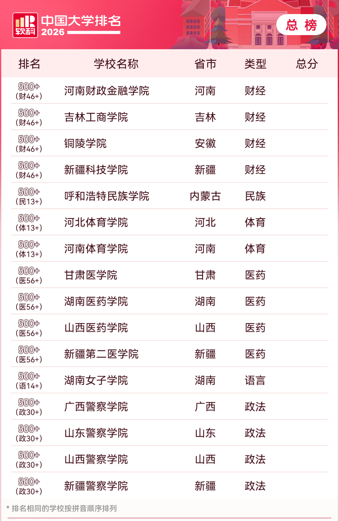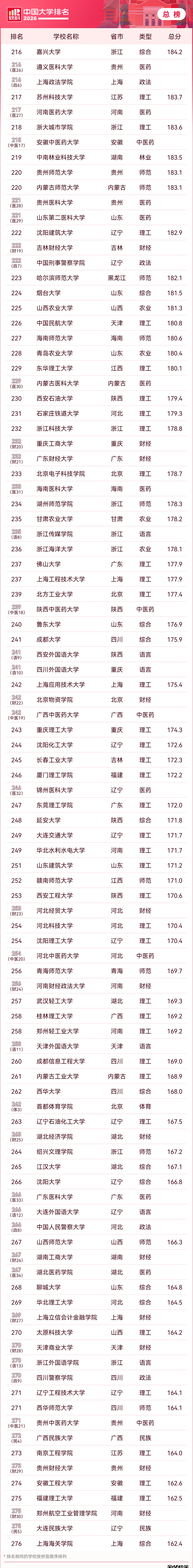 二、软科2026年中国大学排行榜完整版