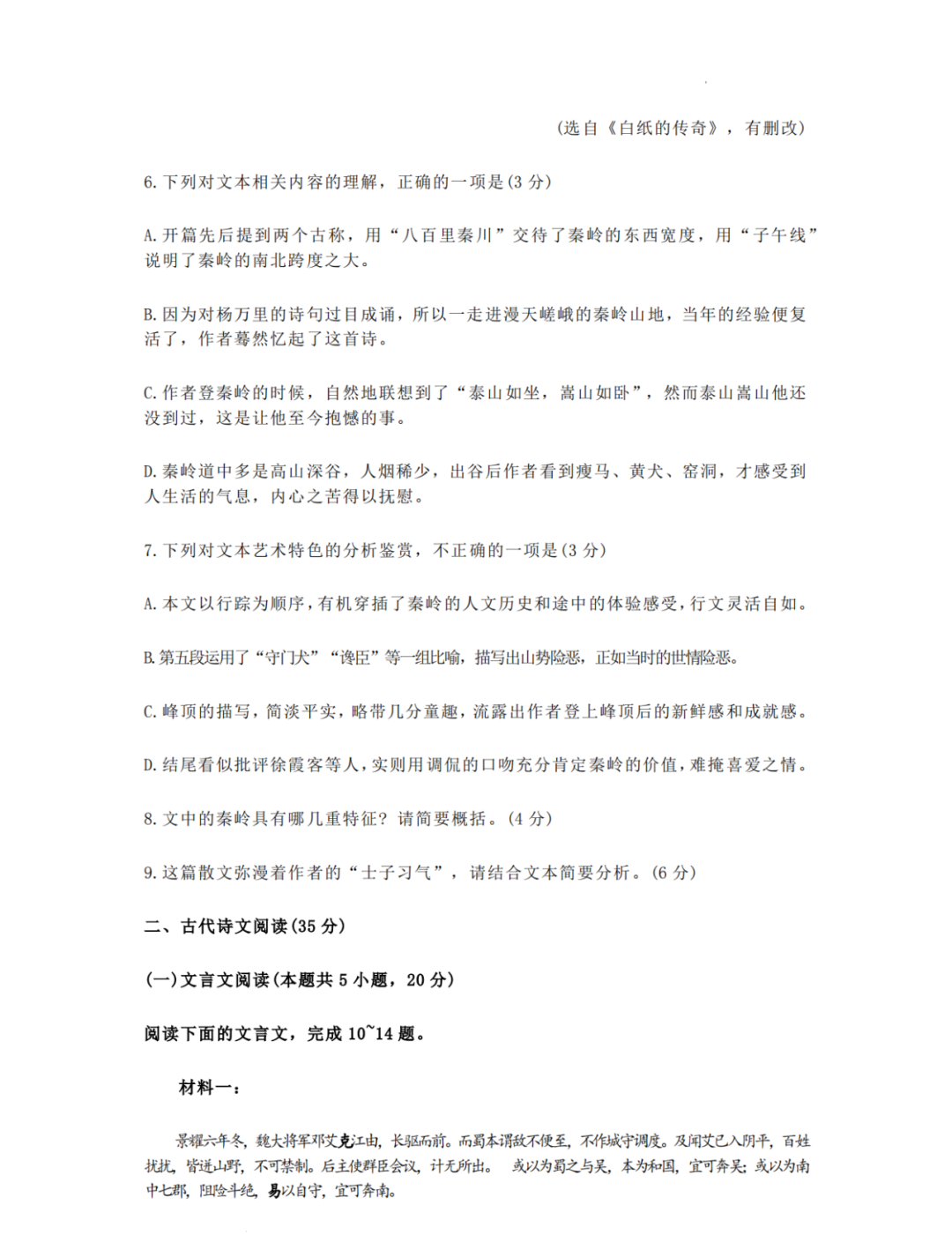 语文试卷: