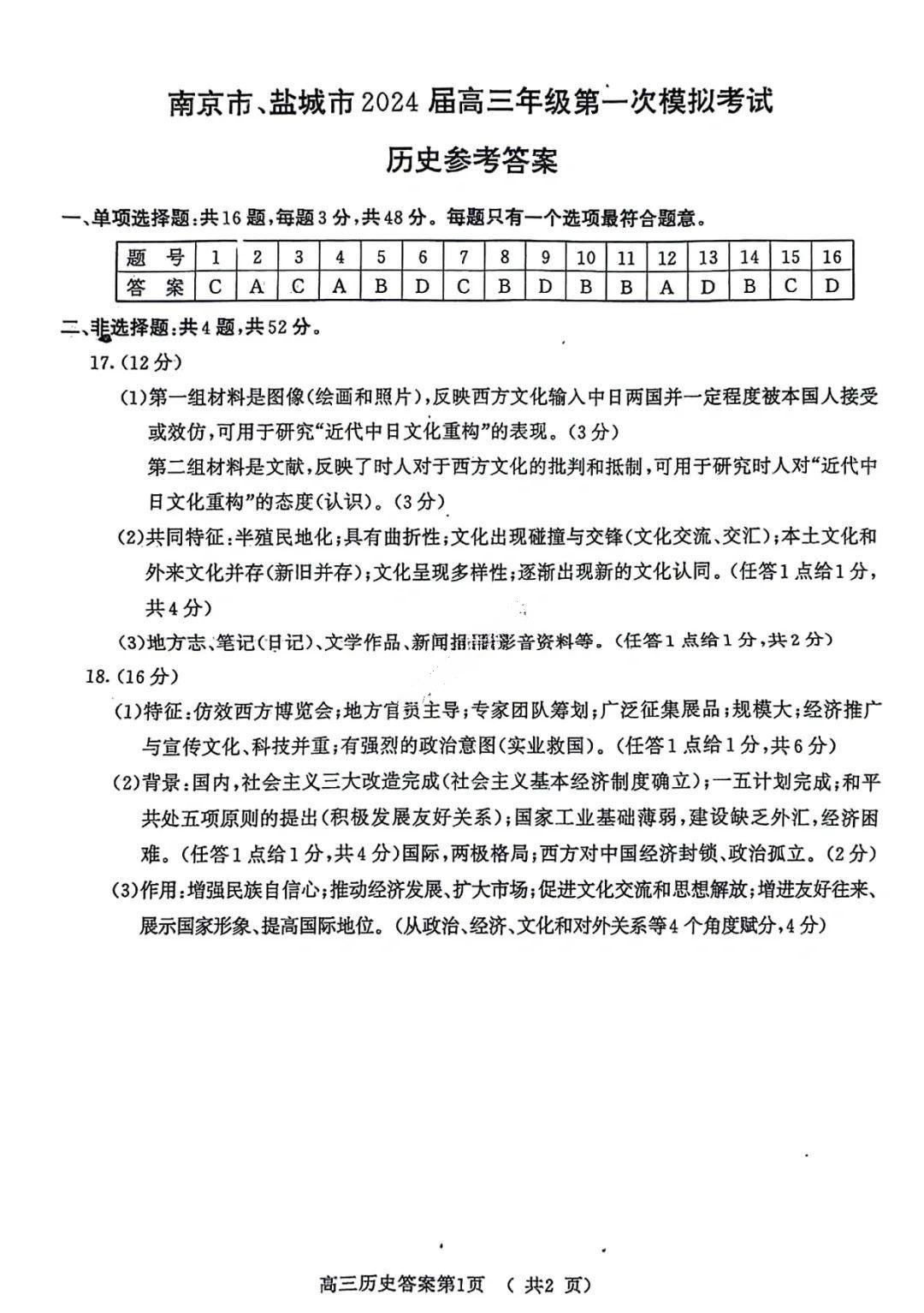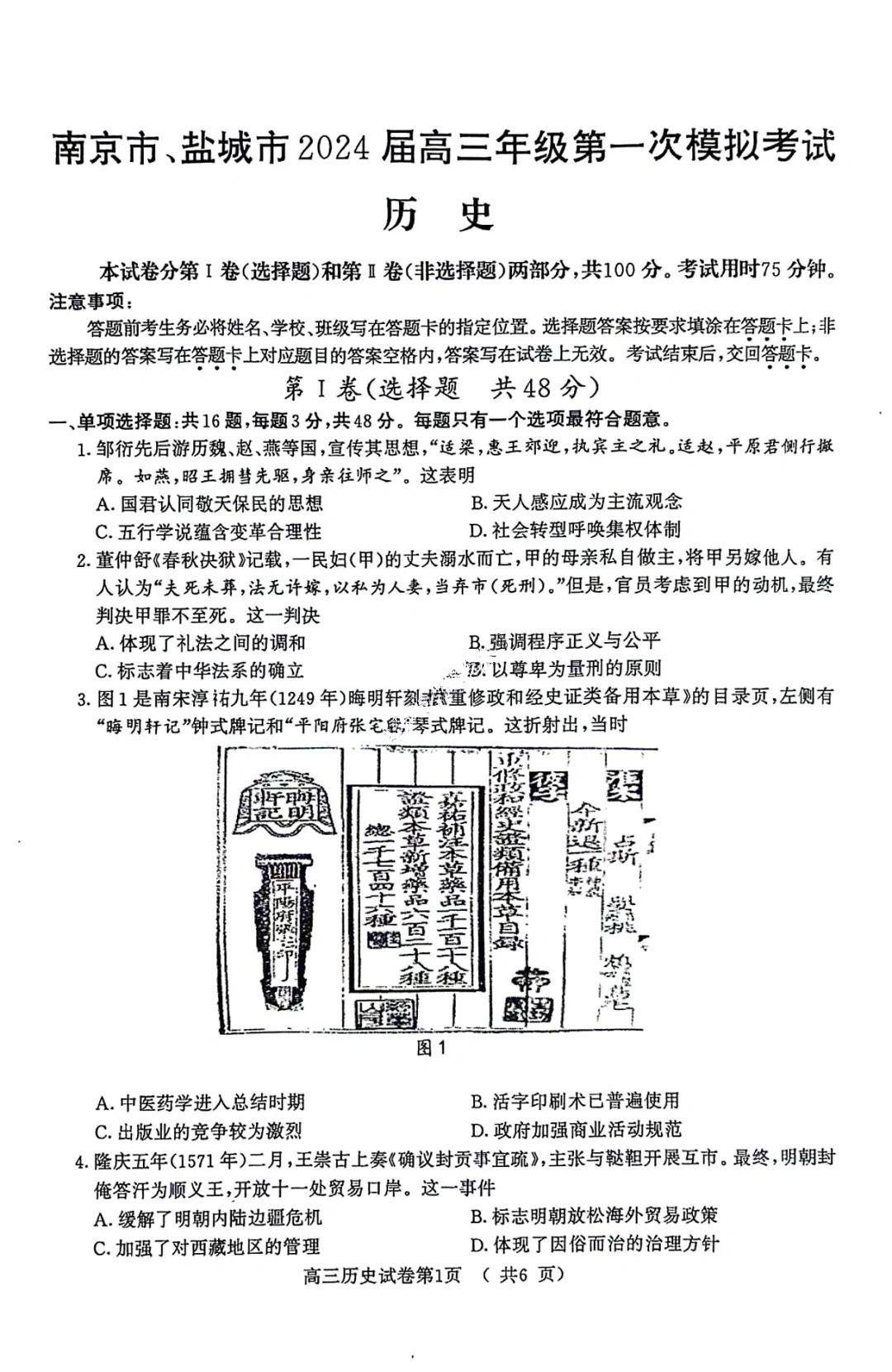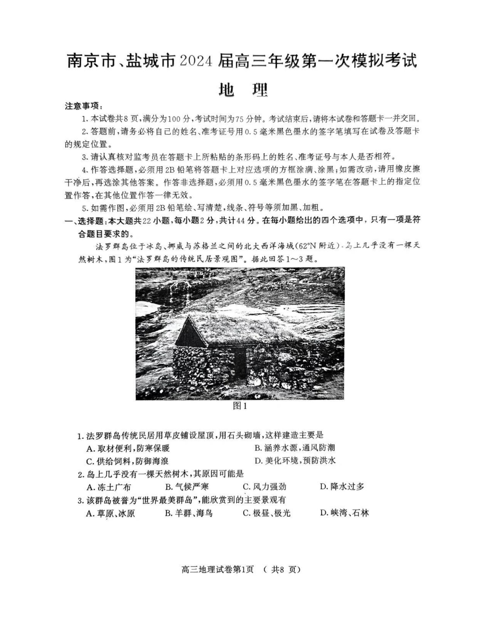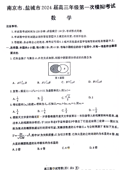 2024南京一模各科试题及答案