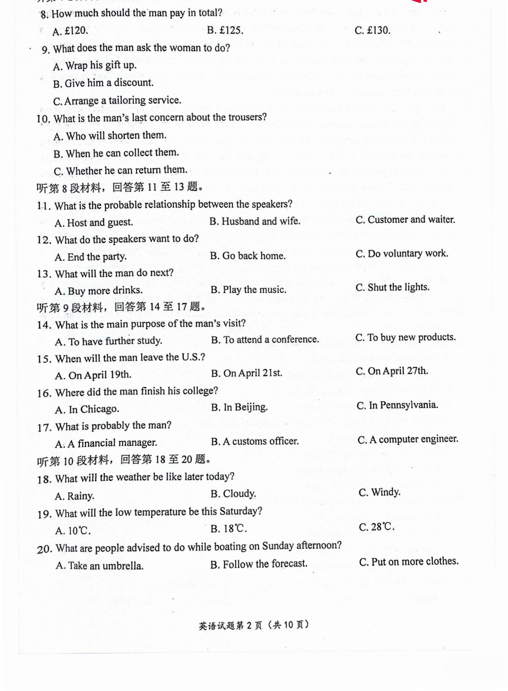 8、英语试题及答案