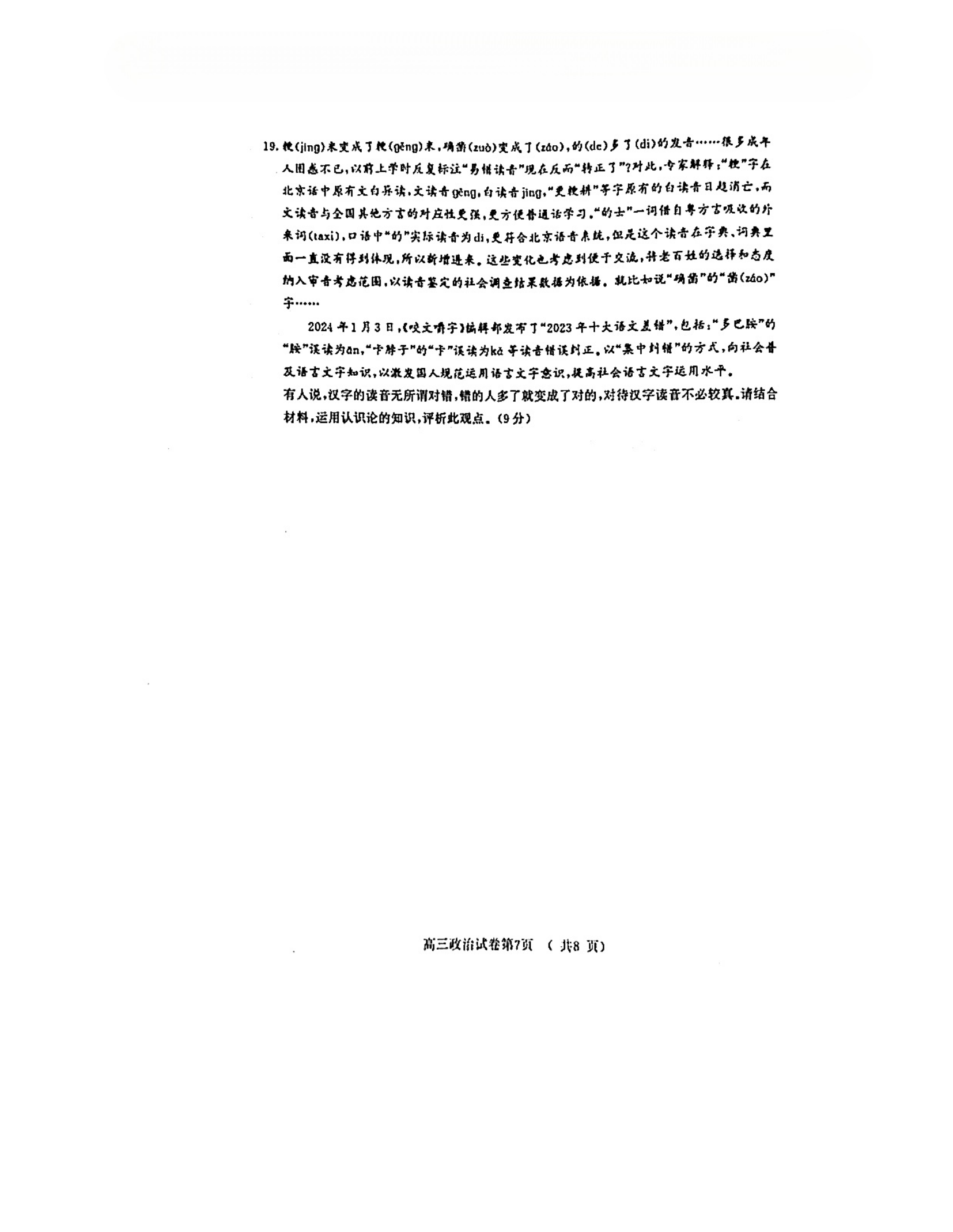 政治试卷: