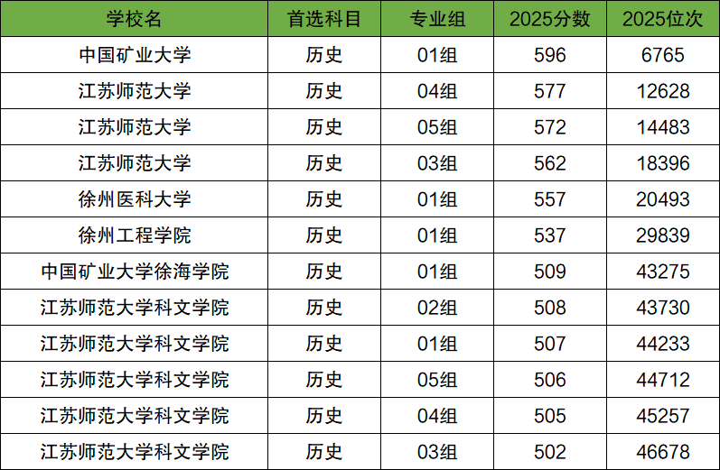 如下仅为各位整理了2025年徐州各大学历史类考生的最低分数线一览表,供大家参考: