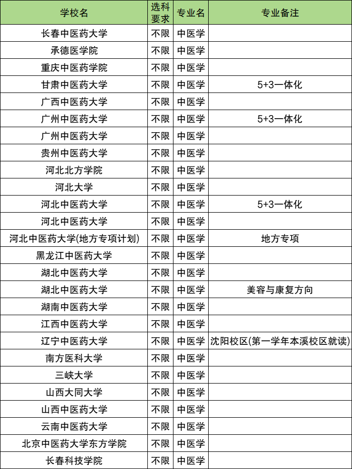 据老师了解到的最新消息,从2025年开始,许多大学都已经更改了中医学专业选科要求,允许选择历史政治地理组合的同学报考。比如云南中医药大学、黑龙江中医药大学、河南中医药大学这三所学校已经正式官宣,从2025年起,中医学类专业选科要求更改为:不限科目要求。意味着这不管是哪一种组合的考生都可以报考,纯文科生也不例外。
