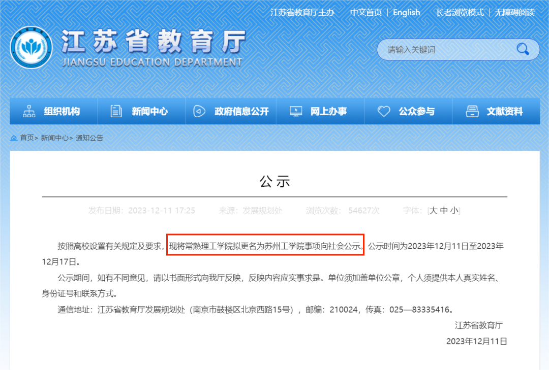 根据最新消息可以知晓,江苏省教育厅已经对常熟理工学院拟更名为苏州工学院进行了公示,等到教育部对该校进行审核并公示后,才算是真正更名为苏州工学院。