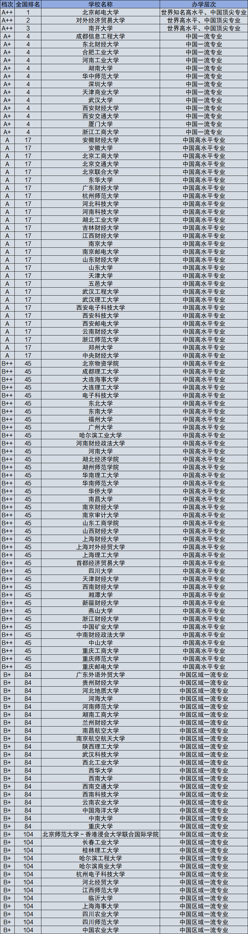 | A++ | 2 | 对外经济贸易大学 | 世界高水平 中国顶尖专业 |