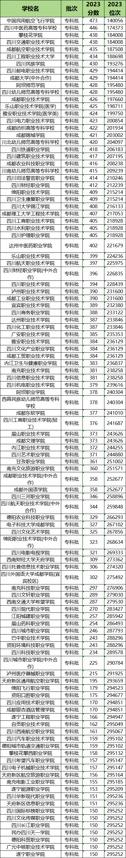 四川专科大学有哪些学校?它们四川高考中文理科的最低录取分数线是多少?了解这两个问题的答案后,各位四川考生可以更加了解四川省最好最值得报考的专科大学是哪所。本文将为大家奉上四川省内所有专科大学2023年的招生录取分数线排名汇总,供2024年四川高考生查阅!