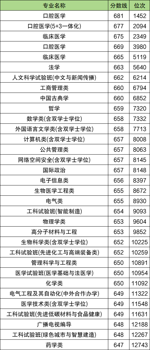 四川大学最高分专业:口腔医学,2025年最低分681分。