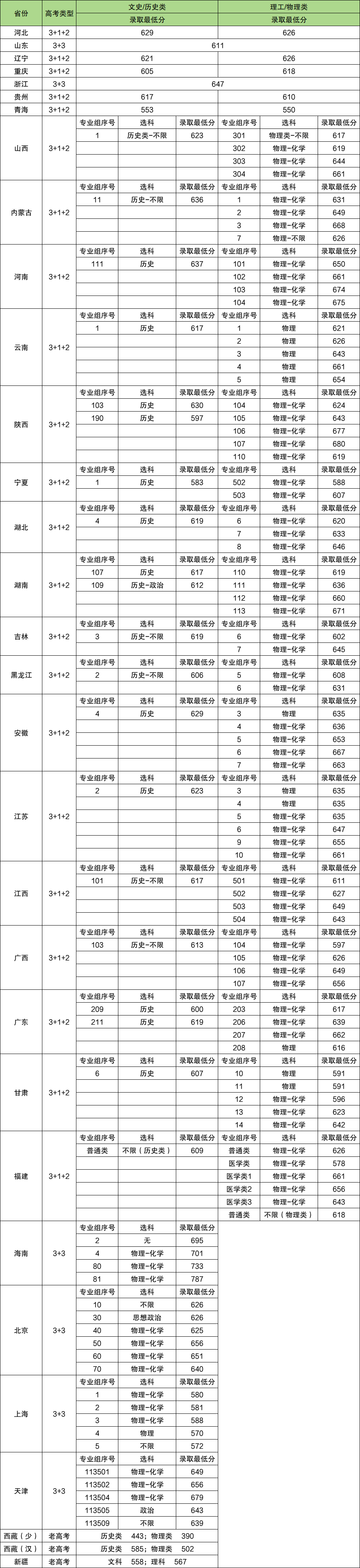 选科 | 录取 最低分 |