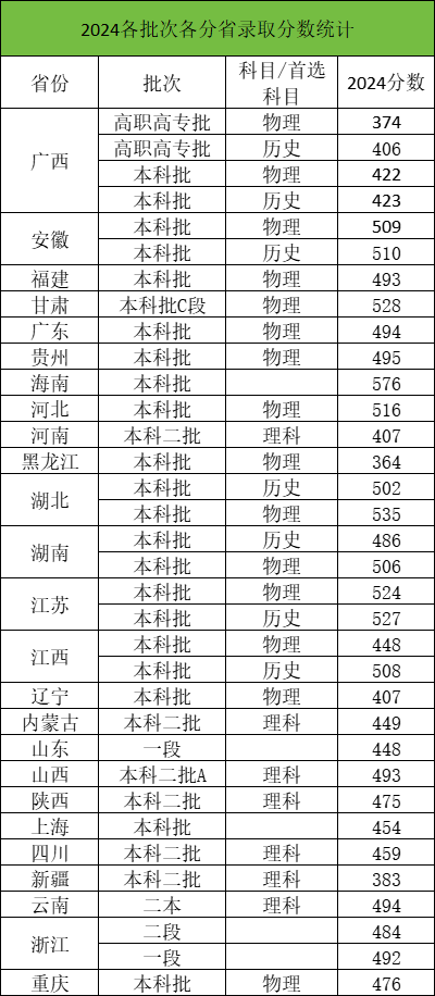 2024年桂林医学院本科批招生,各省最低录取分数线如下: