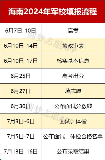一、2025海南军校报考流程及时间