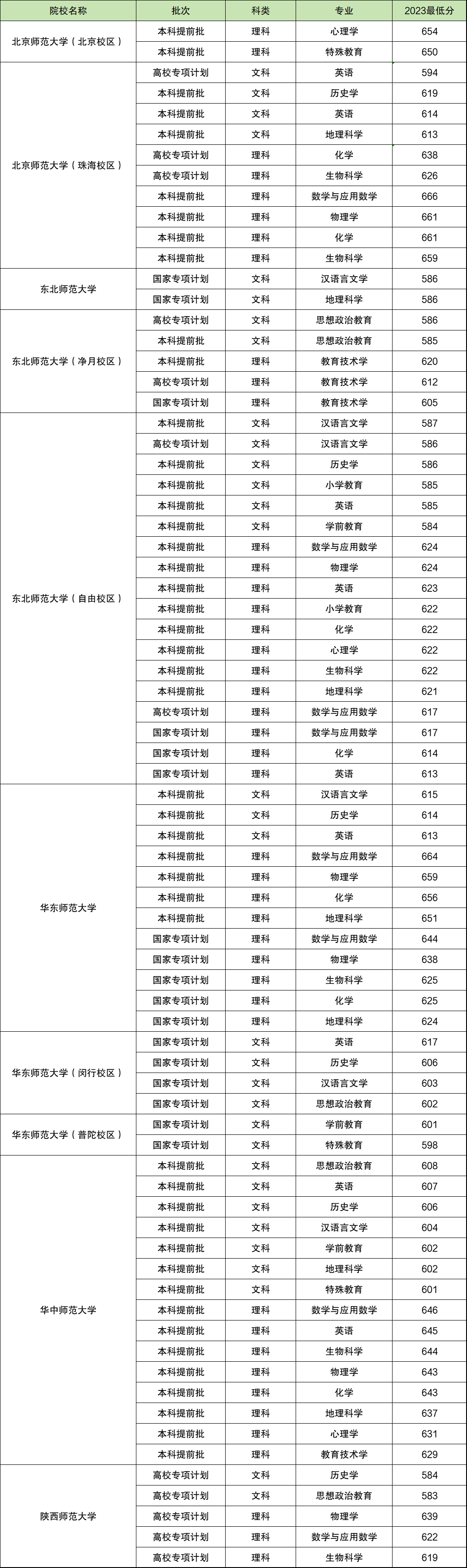 2023年国家公费师范生院校在四川分高校专项批次、国家专项批次和本科提前批次3个批次招生,同一院校同一专业批次不同,分数线也不同。