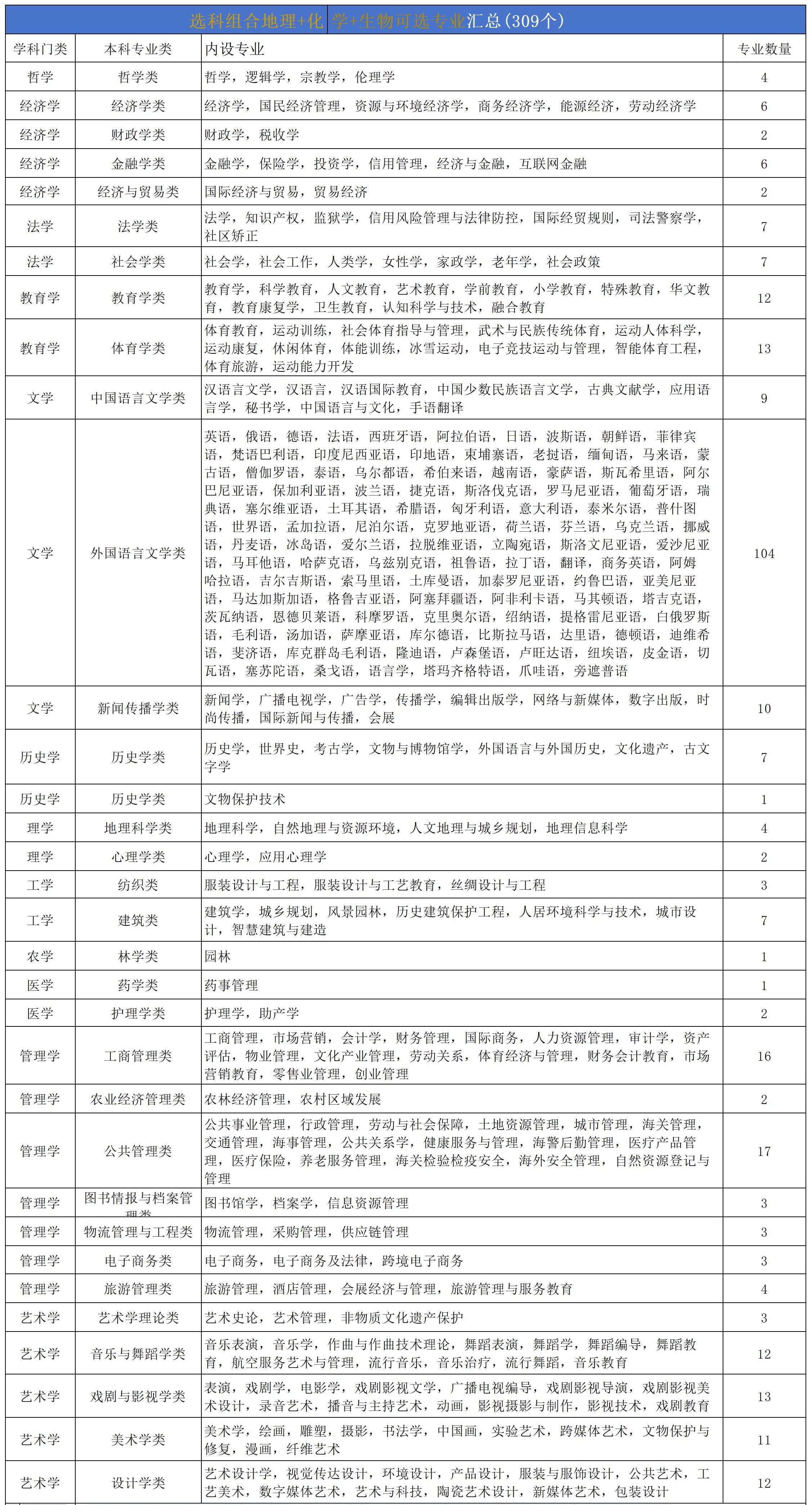 化生地组合的可选专业不算多,专业覆盖率为41.81%,不能选择的专业基本为矿业类,纺织类,轻工类等专业。除此之外,其他所有专业,该选科组合的学生未来都可报考。