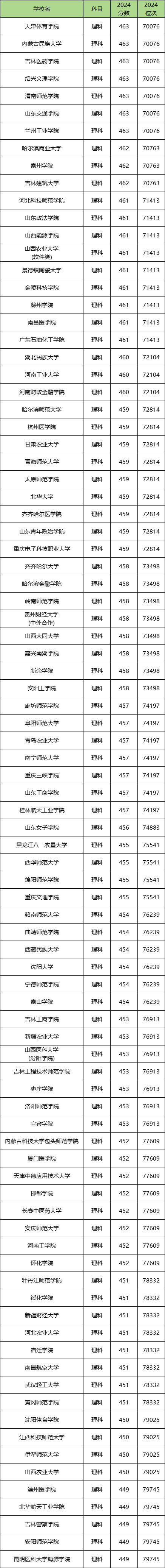 分数最高为天津体育学院、内蒙古民族大学、吉林医药学院、绍兴文理学院等,均为463分。