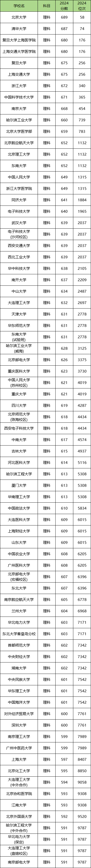 分数最高为北京大学、清华大学、复旦大学上海医学院、上海交通大学医学院,最低分在680分及以上。