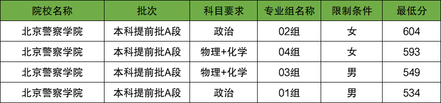 北京警察学院是我国公安类警校,2025年在北京提前批招生录取分数线如下:公安类专业男生最低分534分、女生最低分593分。