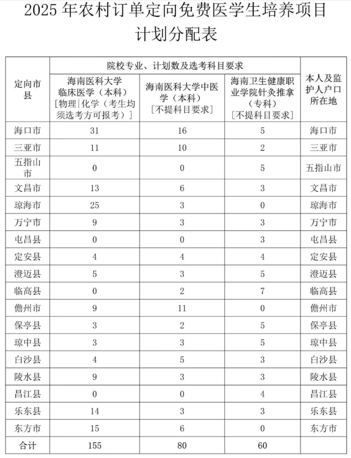 根据贵州省卫生健康委员会公布的《关于做好2025年本科层次农村订单定向免费医学生招生录取工作的通知》,为大家整理以下内容。