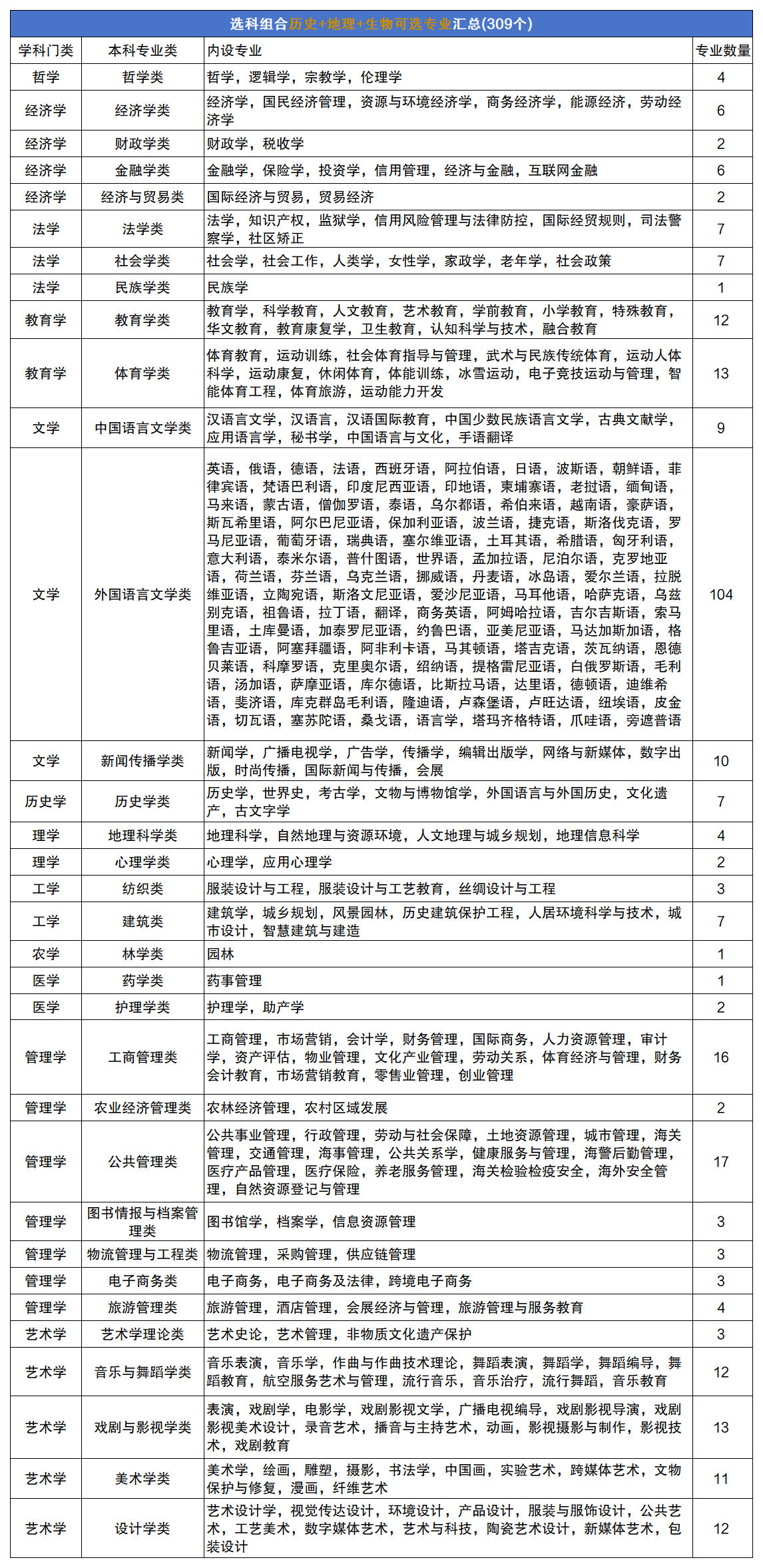 一、2025历地生可选专业一览表
