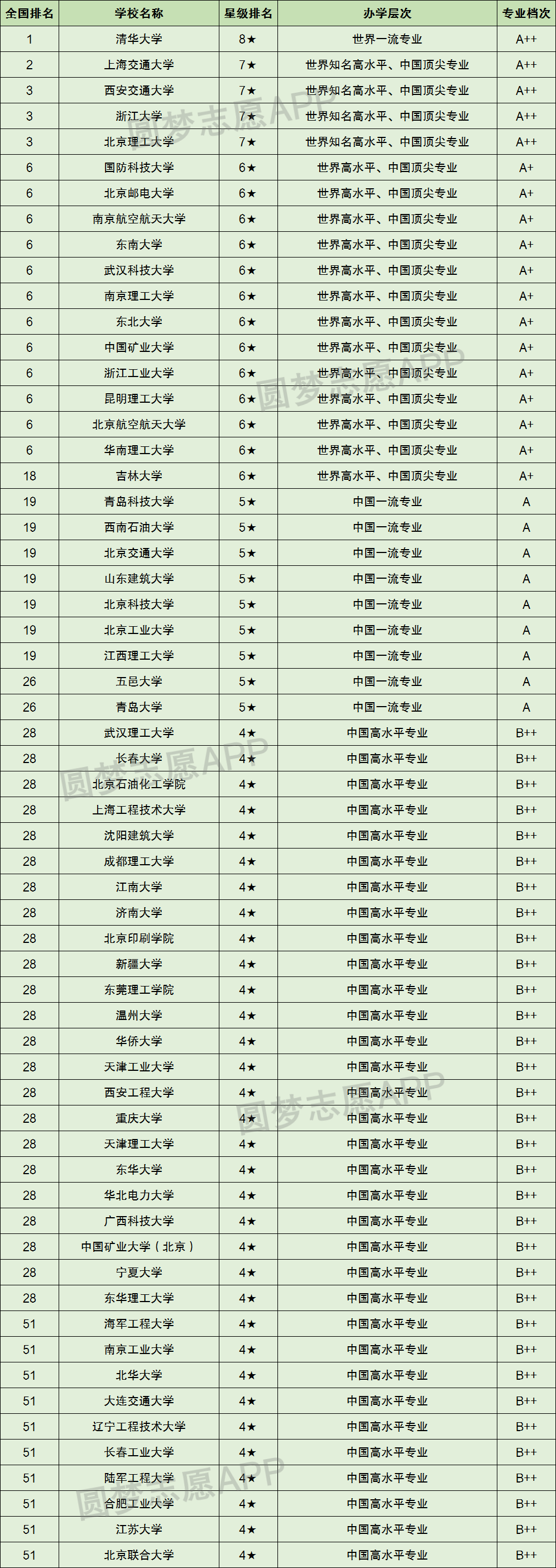 2022年校友会机械工程大学排名上榜高校有60所,完整排名和专业评级如下表: