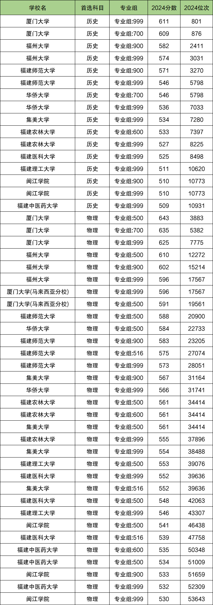 根据福建省2024年高考录取分数线,本文整理出了福建省前十名大学在历史类和物理类的最低录取分数线,以供考生和家长参考。