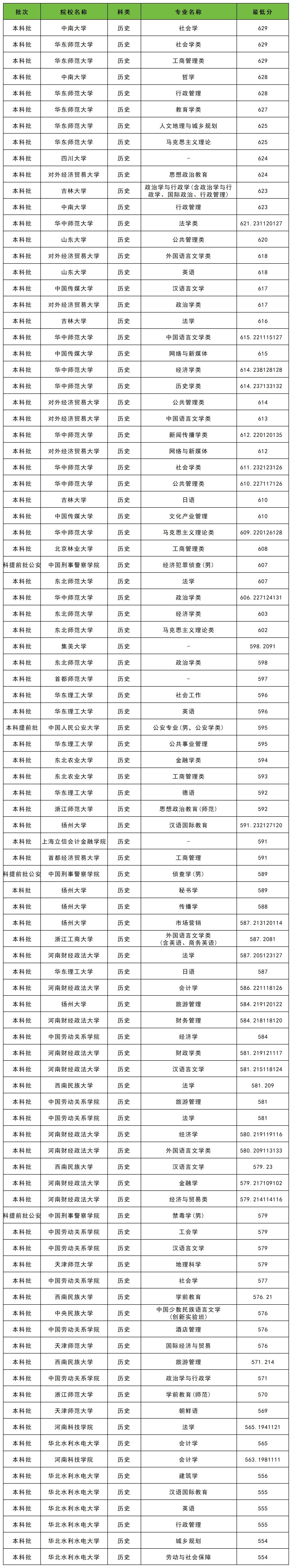 2025年河南国家专项历史类录取分数线位于554分到629分之间,各学校各专业最低分如下。