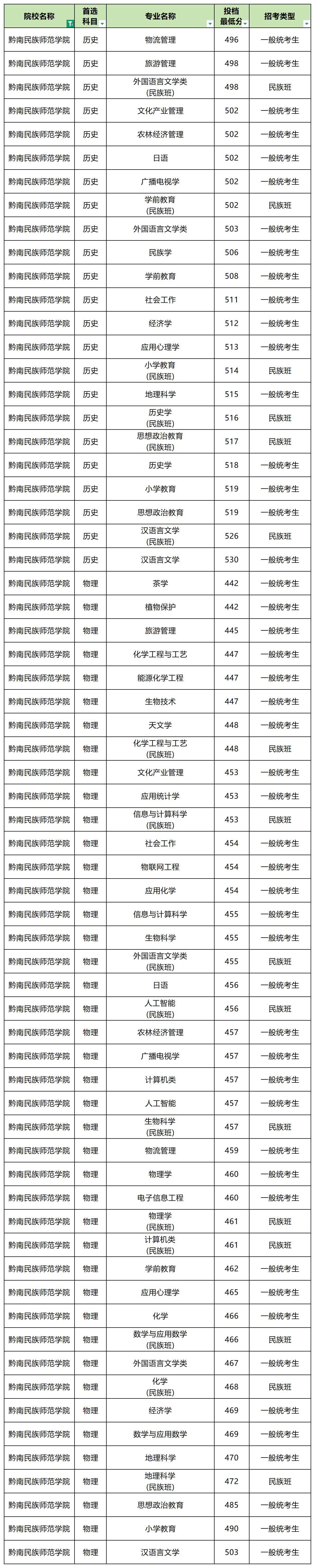 2025年黔南民族师范学院最低分数线: