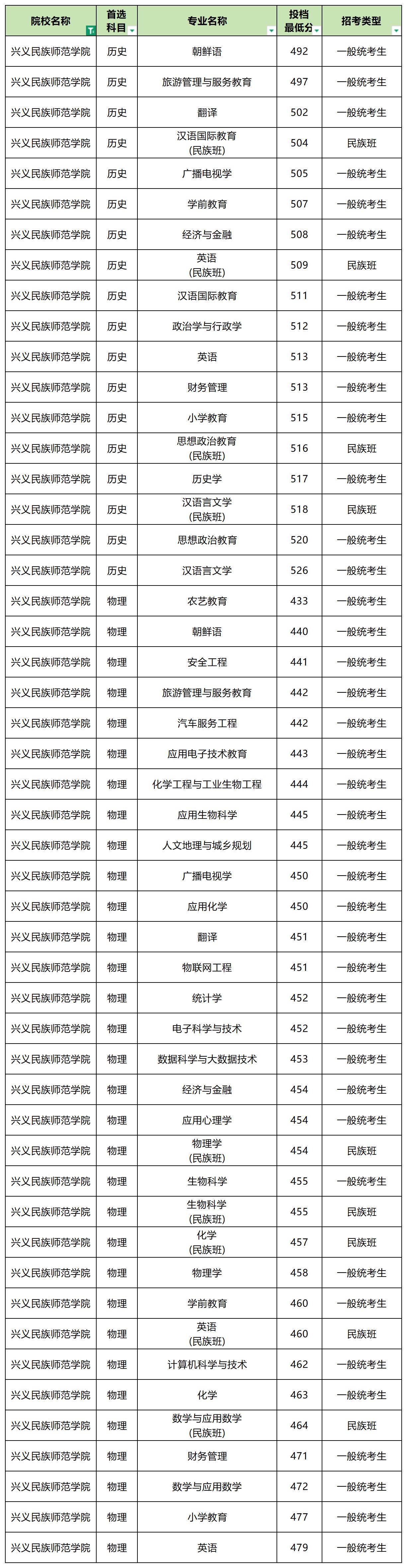2025年兴义民族师范学院最低分数线: