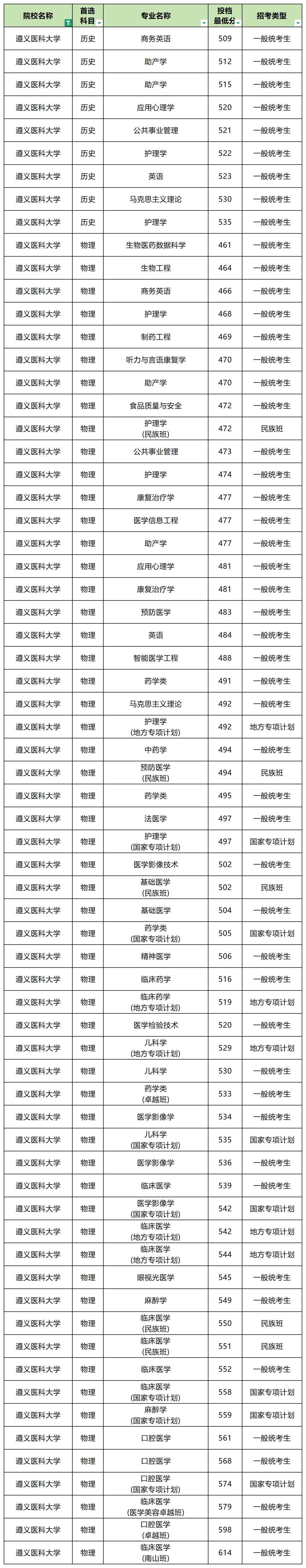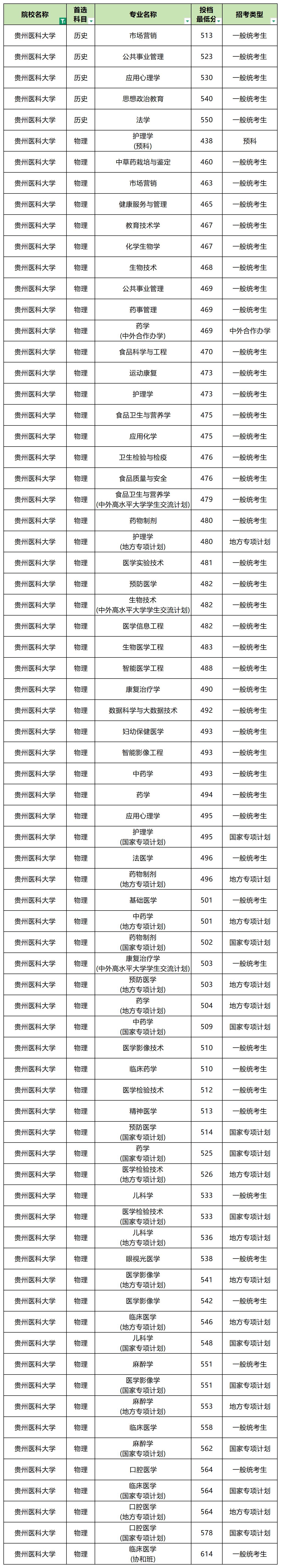 2025年贵州医科大学最低分数线: