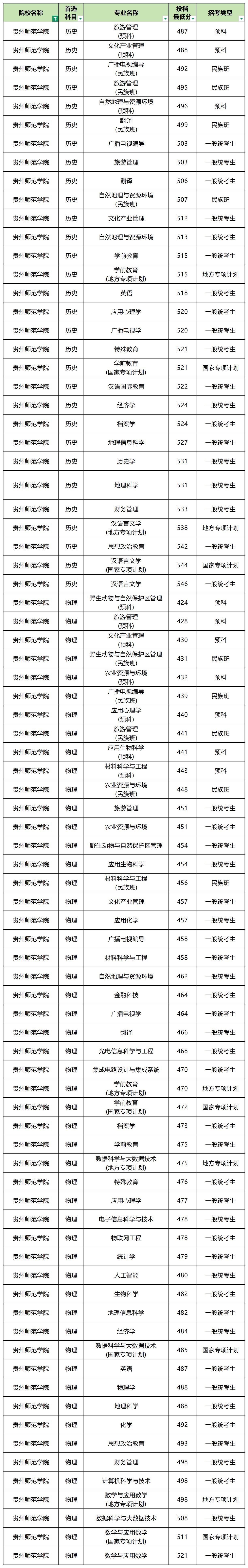 2025年贵州师范学院最低分数线: