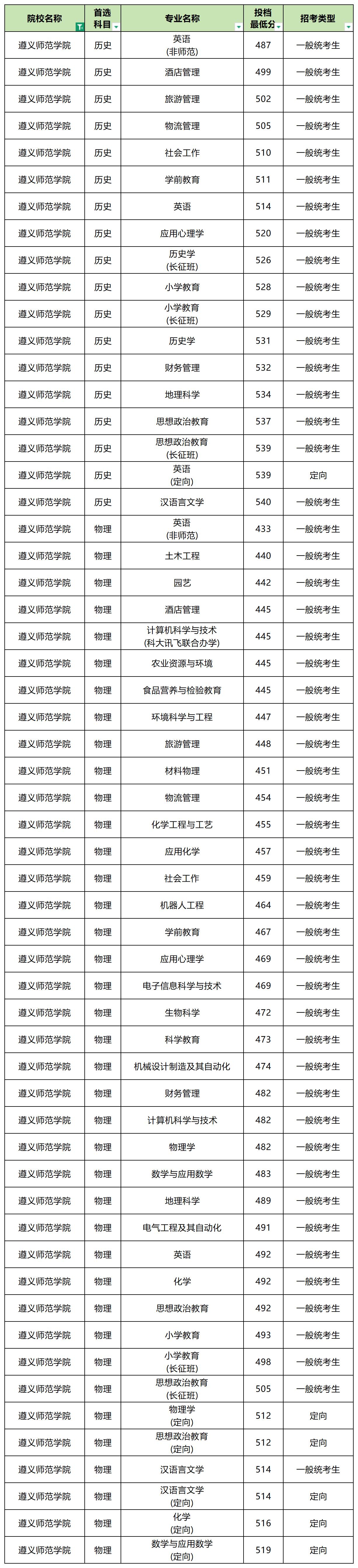 2025年遵义师范学院最低分数线: