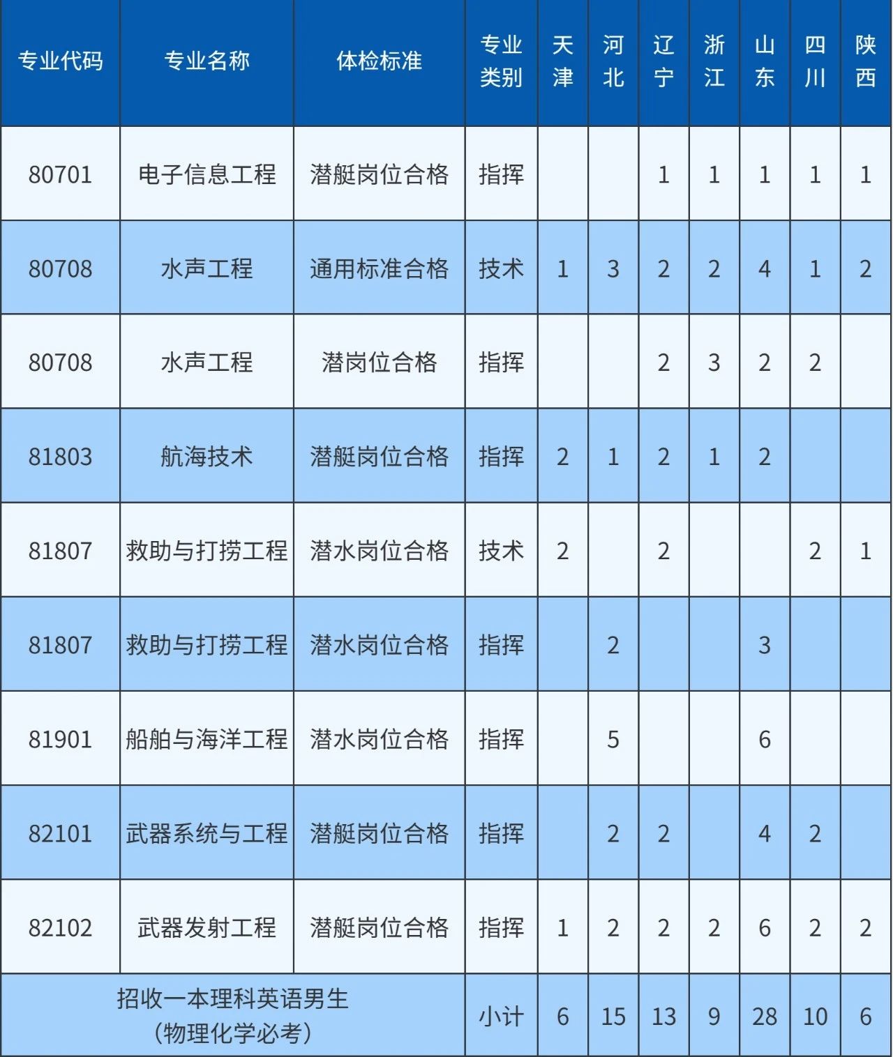 参加高考的普通高中应届、往届毕业生,理科男生(物理必选)。年龄不低于17周岁,不超过20周岁,截止报考当年8月31日。政治考核合格,志愿为国防建设服务;身心健康,体检结论为潜艇、潜水等相关专业合格(具体要求按报考专业要求)。