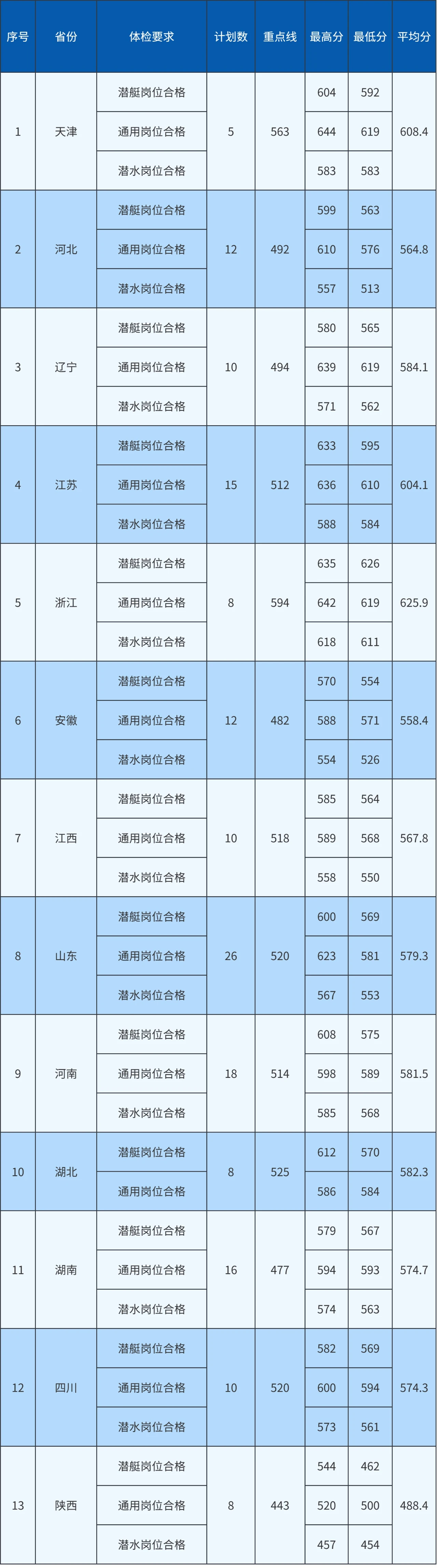 海军潜艇学院在浙江招生9人、安徽11人、湖南15人等,本期将介绍海军潜艇学院全国各省招生人数、招生简章,还包括海军潜艇学院往年分数线等内容。