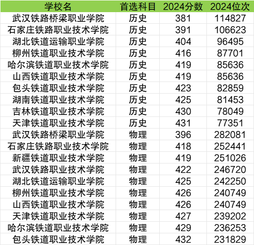 河北省2024年铁道类专科大学院校最低分:历史类381分、物理类396分。