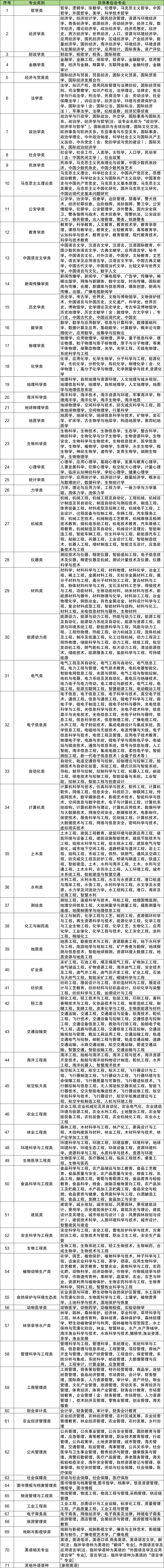 2024年税务局所需的相关专业一共分为71个学科类别,考生所学专业如果不在这些专业范围内,那么一般是不允许报考的。具体专业范围如下表所示: