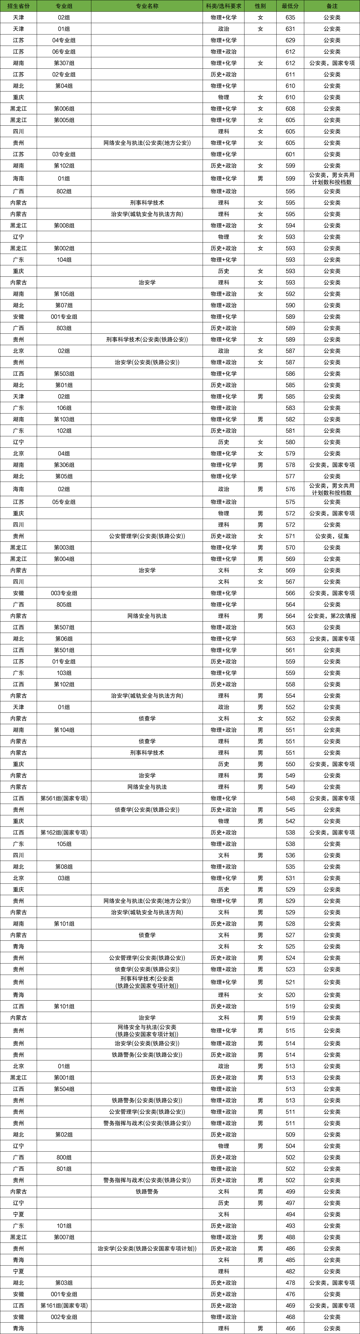 | 郑州警察学院 | 文科 | 男 | 523 |