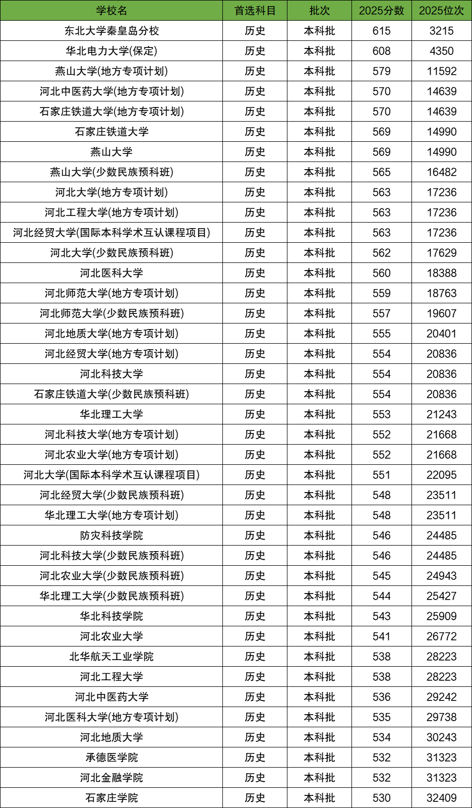 三、河北一本大学录取分数线(历史类)