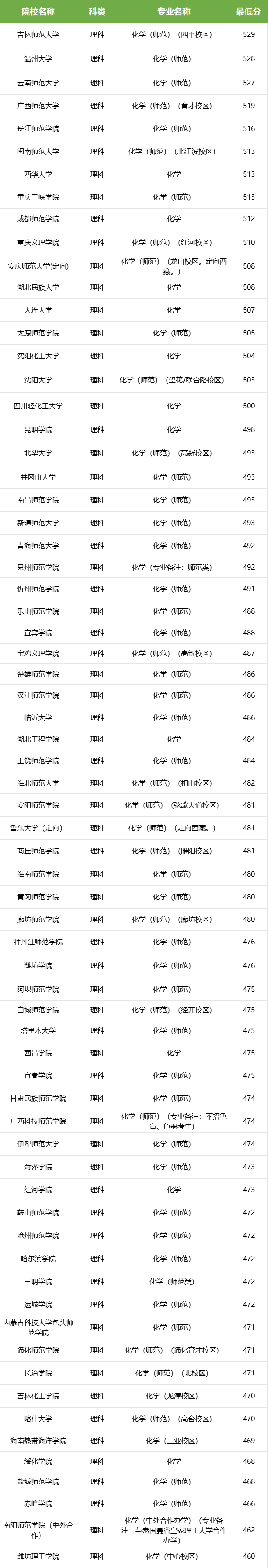 下表为在二本招收化学专业的大学,以及最低录取分和排名。其中很多大学在软科排名中没有化学专业排名,本文会在文末附上全国大学化学专业排名。
