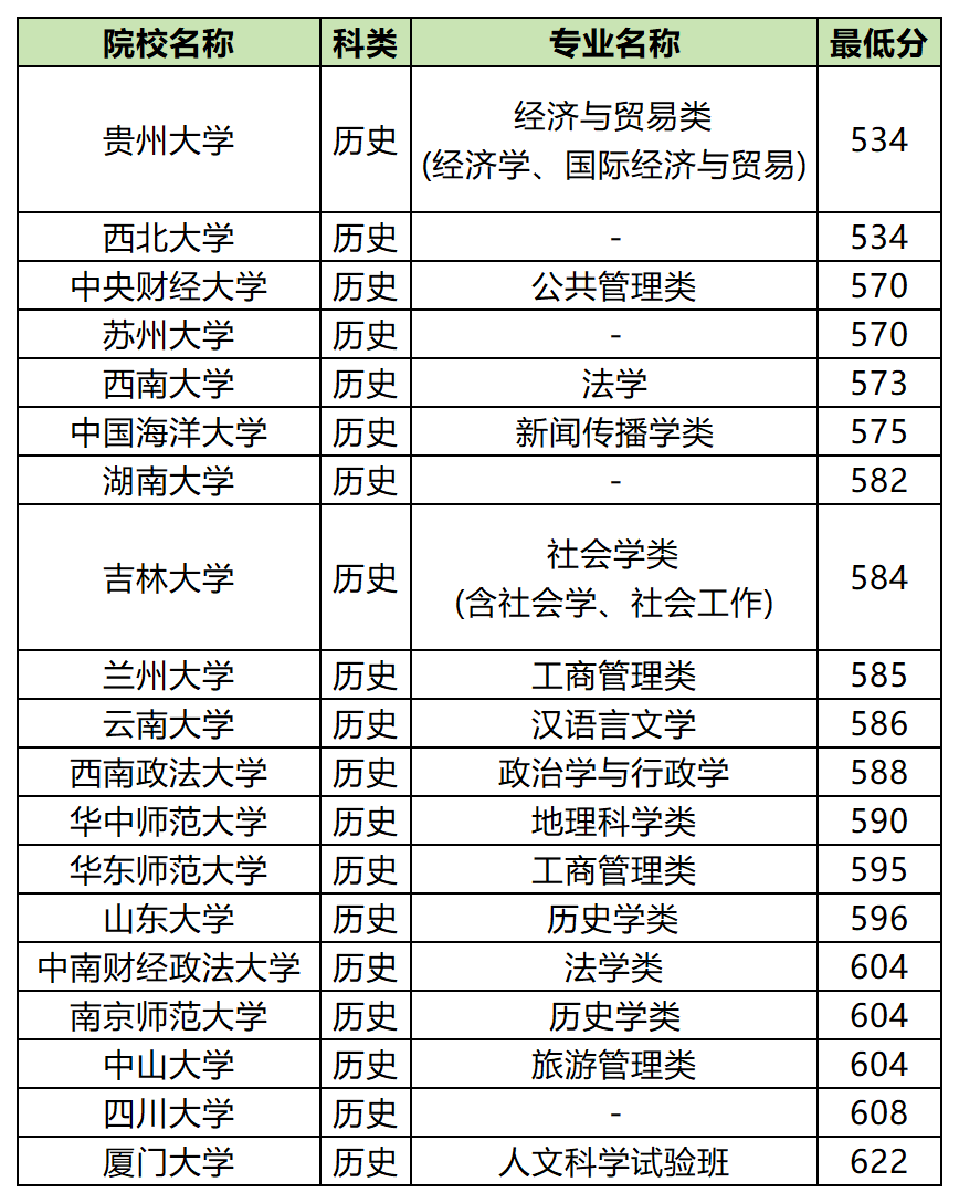 2、历史类:最低分534分