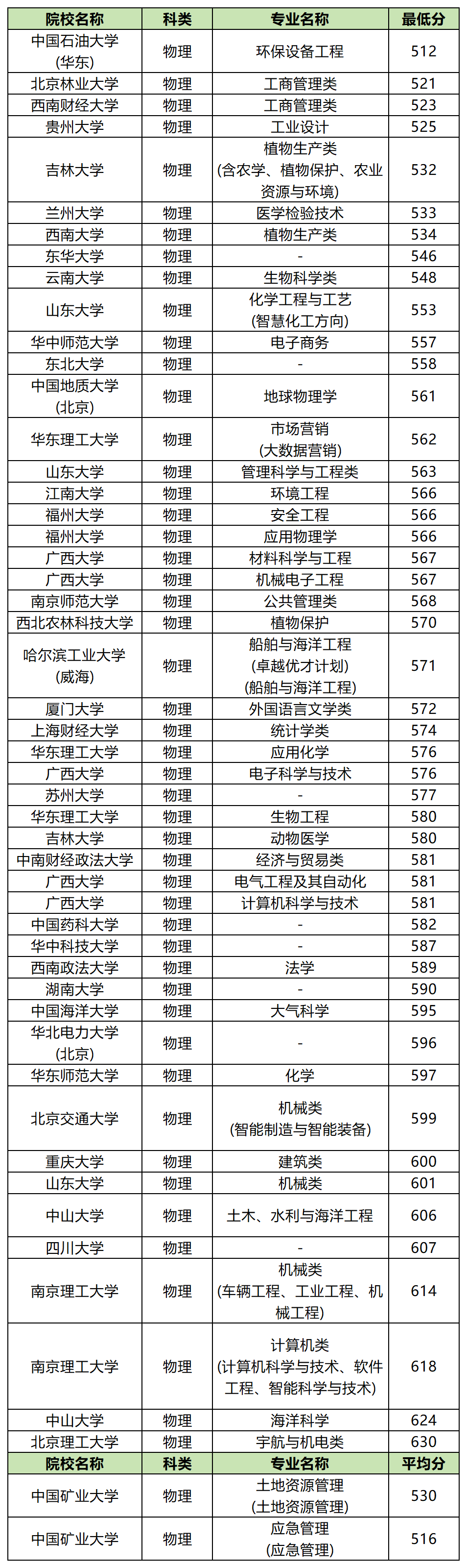 1、物理类:最低分512分