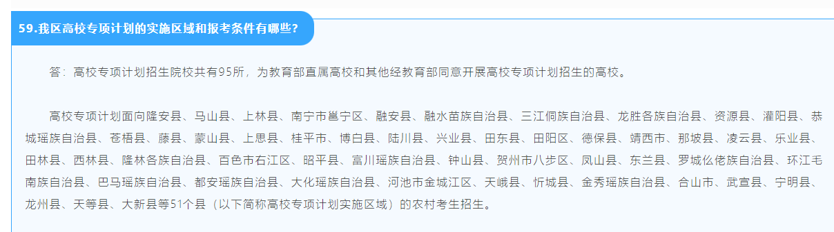 三、广西2025高校专项计划实施区域