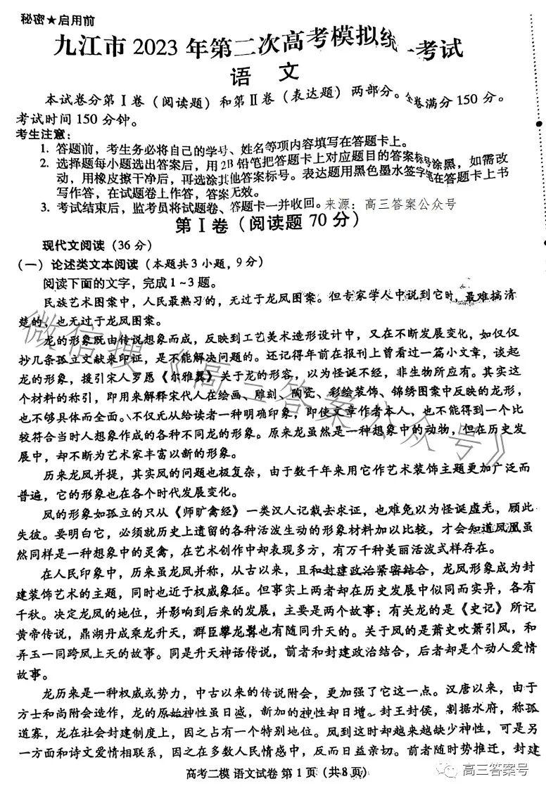 九江二模2023答案及试卷真题解析是近段时间非常多人关注的,想要及时了解九江二模2023语文、数学、英语、文综、理综等科目答案及试卷就可以关注本文,本文在考试结束后会及时收集更新九江二模2023试题详情及答案详解汇总。