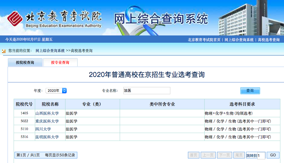 (二)法医学专业在北京市3+3模式中的选科要求