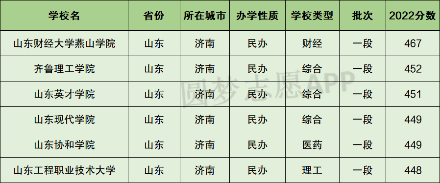 同时根据圆梦志愿APP查询的2022年济南市所有民办本科大学录取分数线可知,在济南市分数线最高的十所民办大学如下: