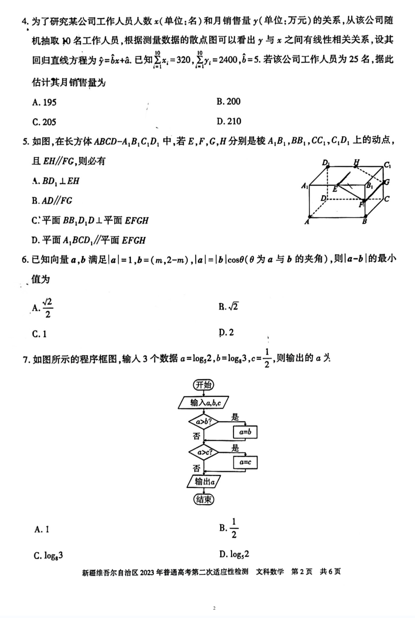 一、2023新疆高考第二次适应性检测文科数学试卷