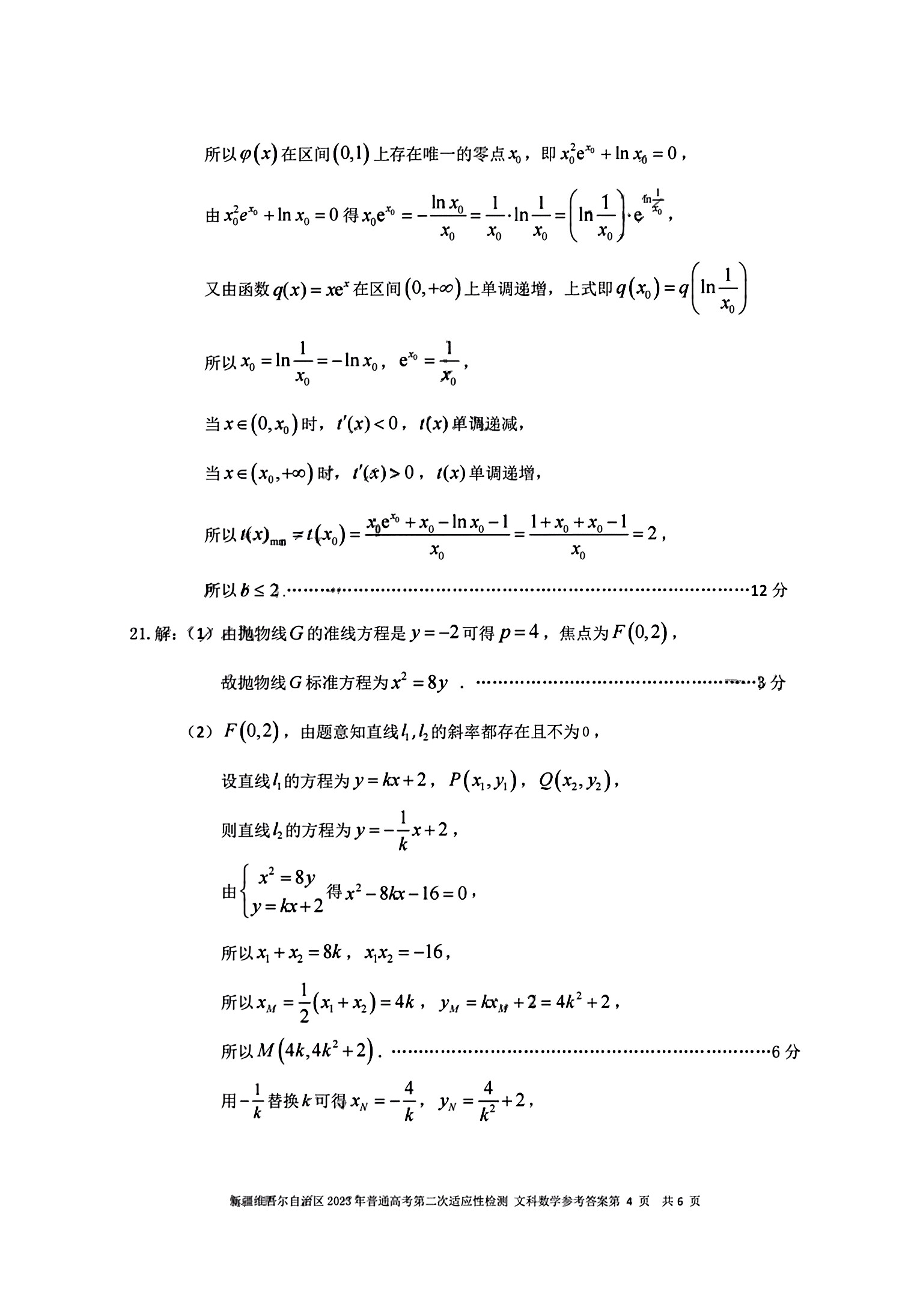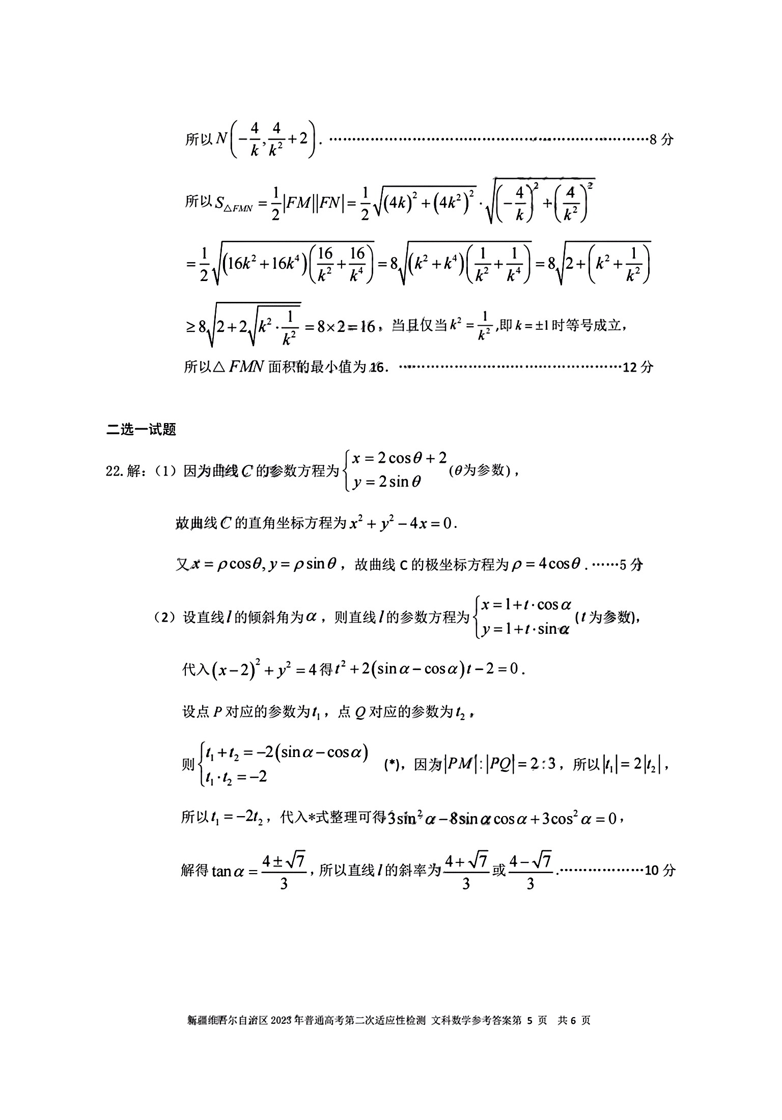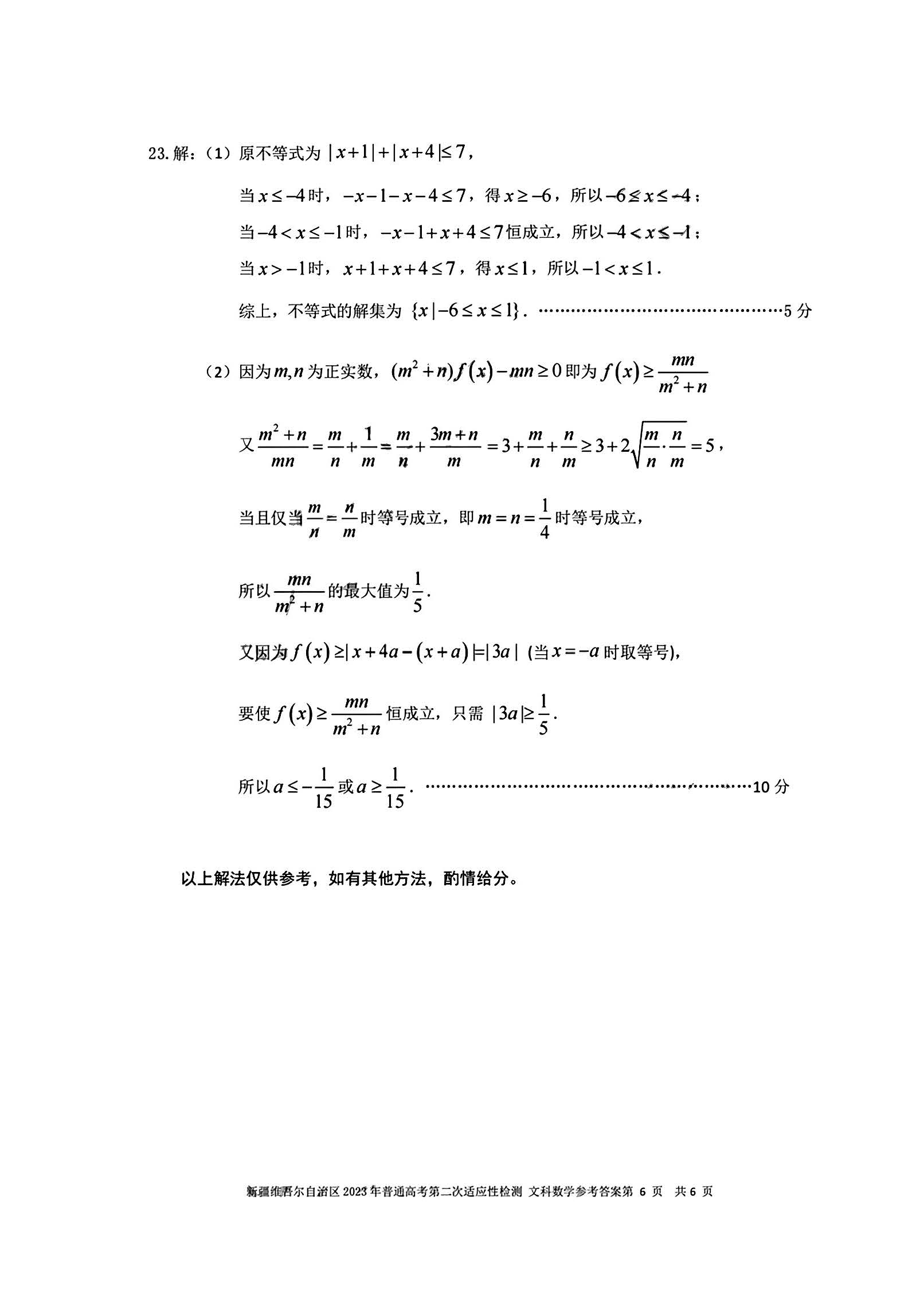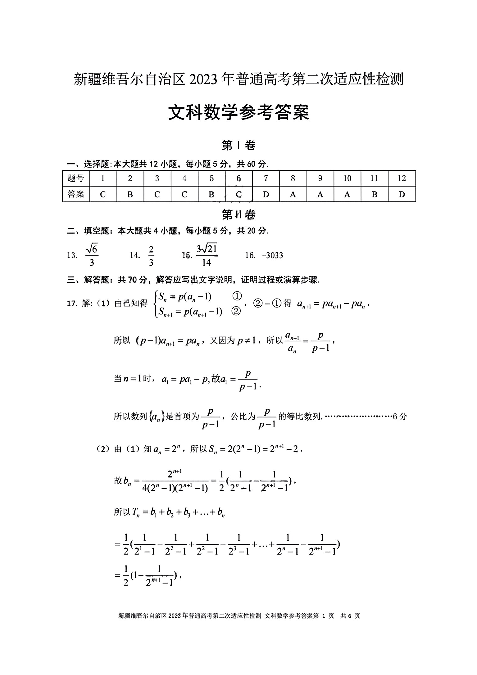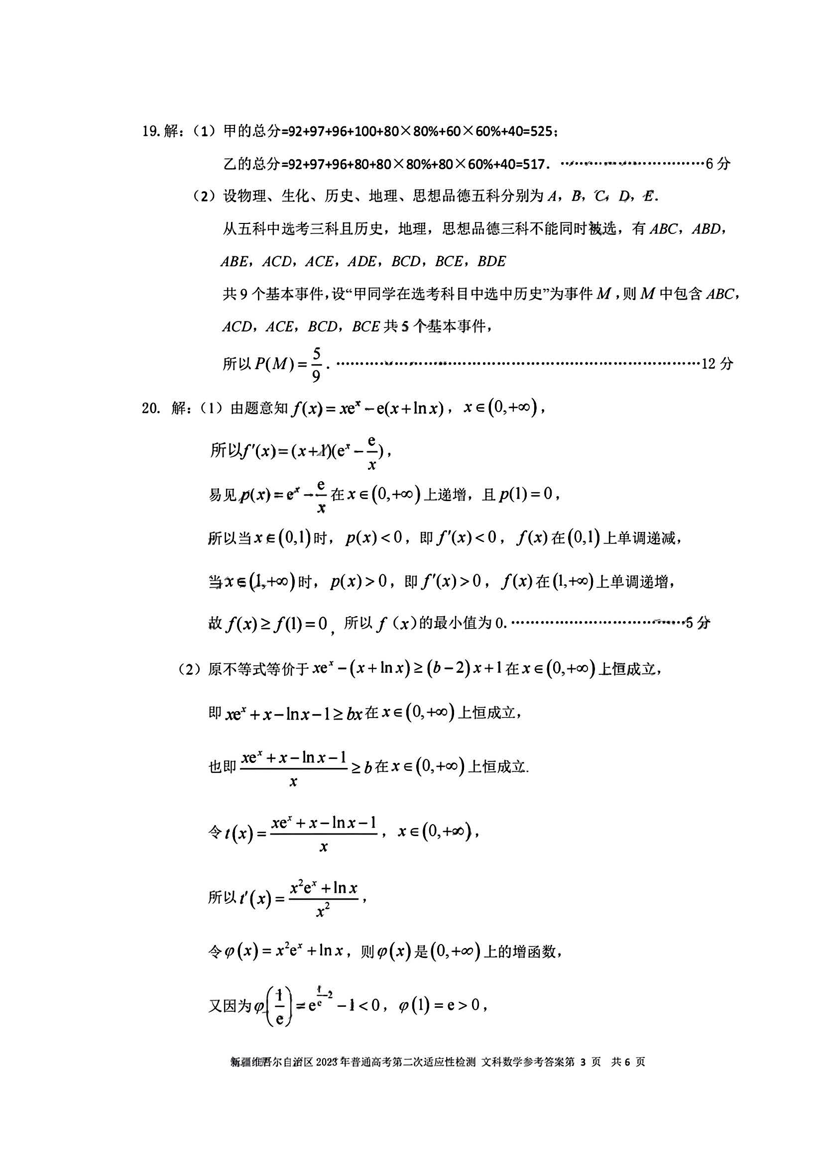 二、2023新疆高考第二次适应性检测文科数学参考答案