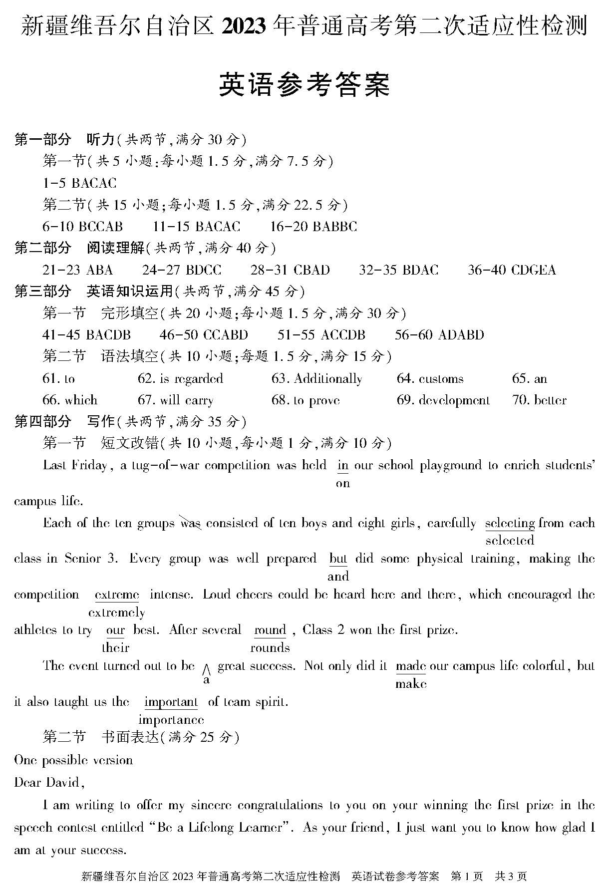 2023新疆高考第二次适应性检测将于2023年4月6日进行考试,本文将在考试结束后为大家更新2023新疆高考第二次适应性检测英语答案及试卷,下文为小编收集整理的2023新疆高考第二次适应性检测英语试题及参考答案,供大家参考。