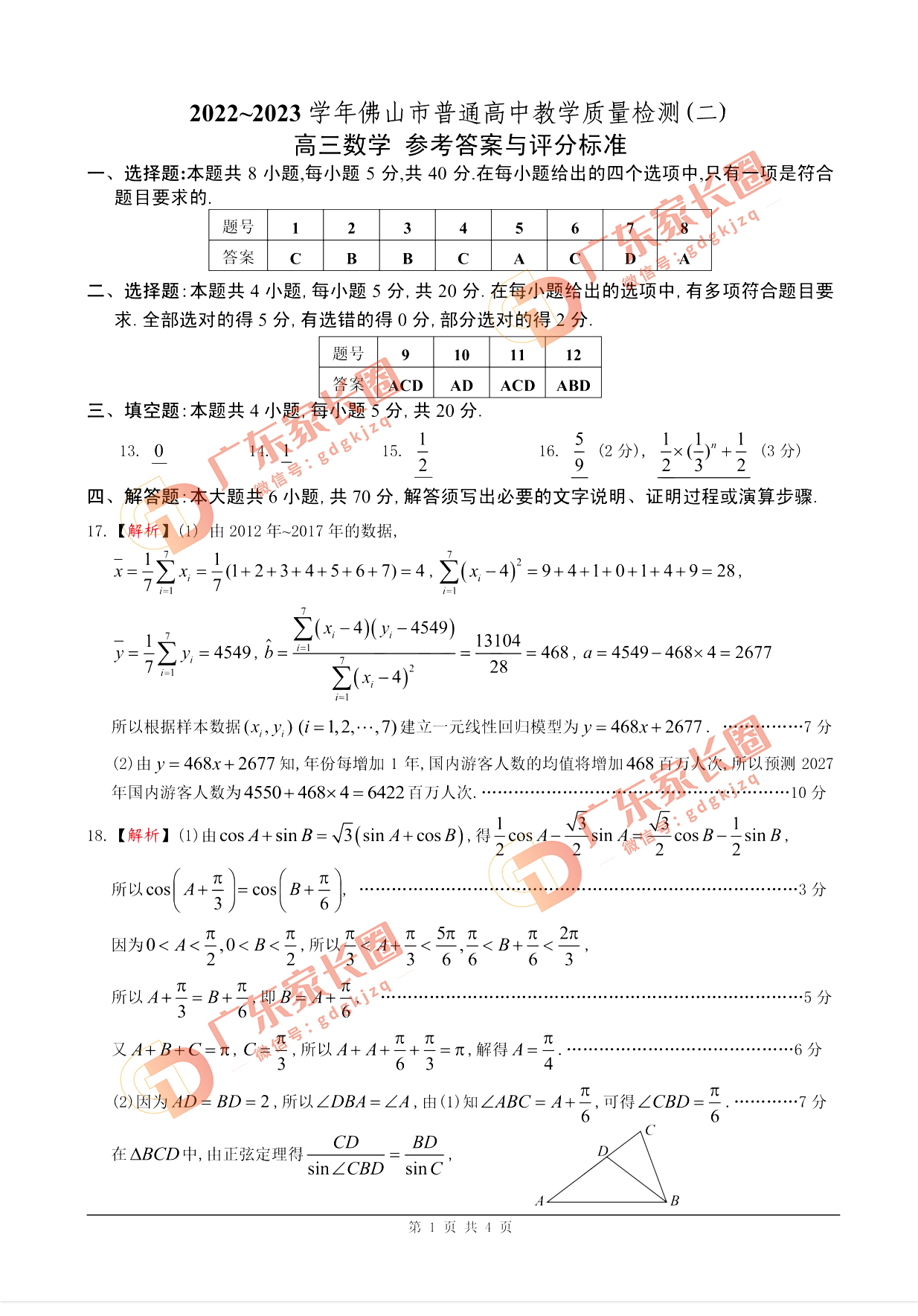 2023佛山二模考试将于2023年4月10日进行考试,本文将在考试结束后为大家更新2023广东佛山二模考试数学答案及试卷,下文为小编收集整理的2023佛山二模数学试卷及答案解析,并为大家附上2023佛山二模各科试卷答案。