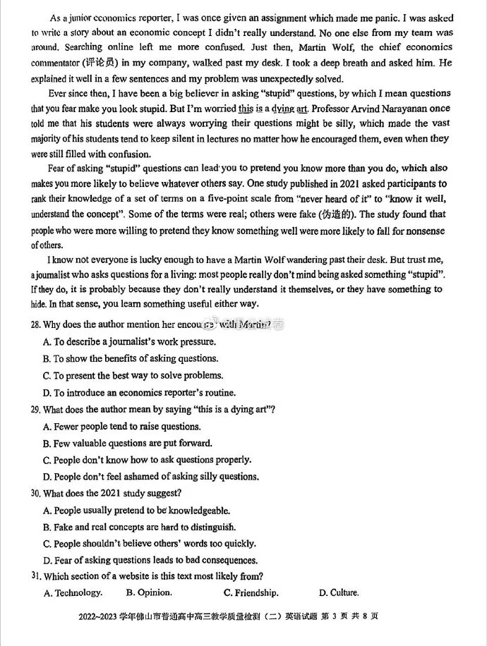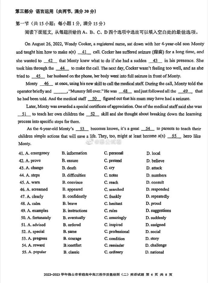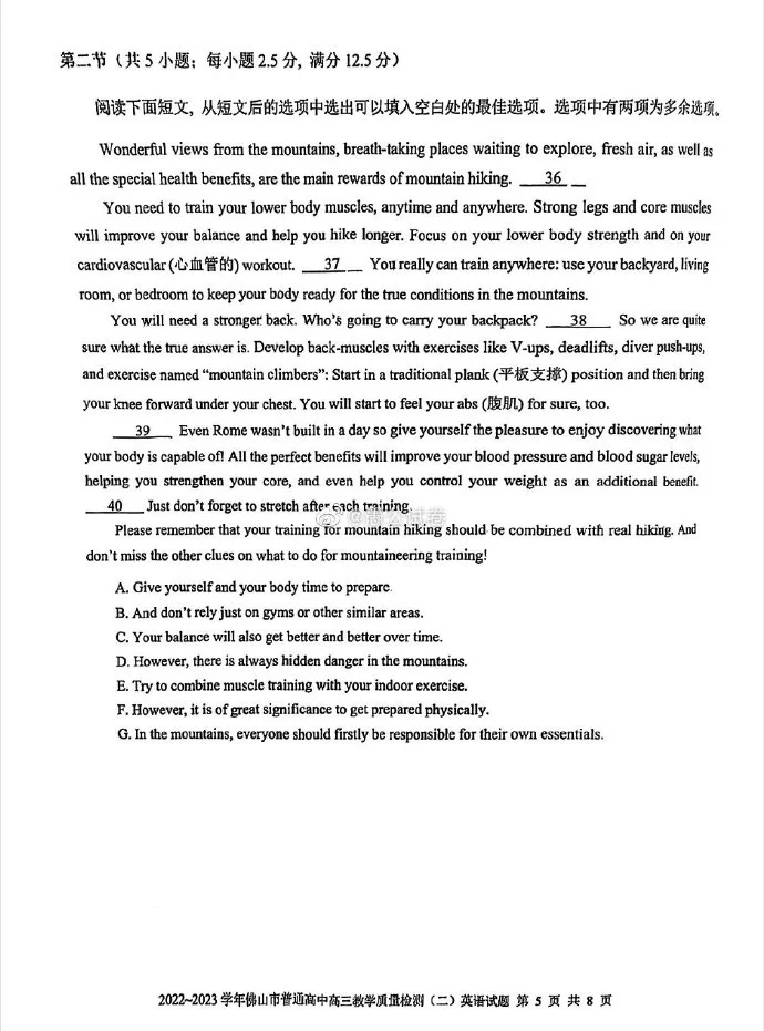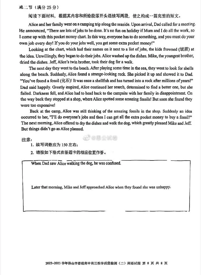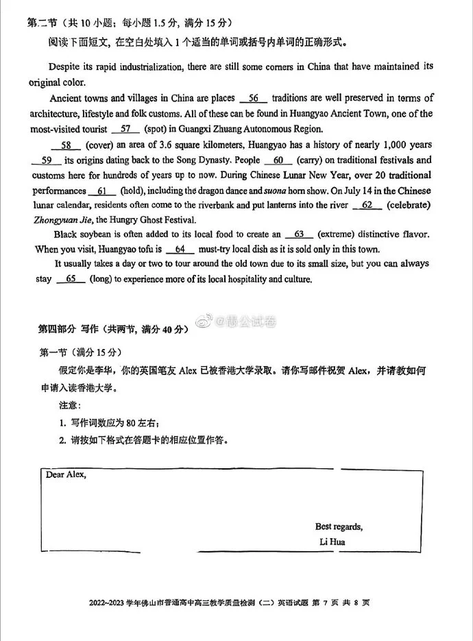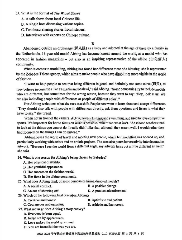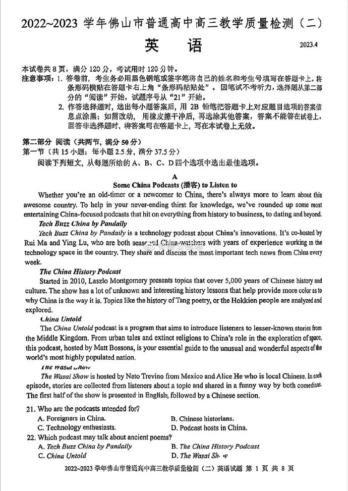 2023佛山二模考试将于2023年4月10日进行考试,本文将在考试结束后为大家更新2023广东佛山二模考试英语答案及试卷,下文为小编收集整理的2023佛山二模英语试卷及答案解析,并为大家附上2023佛山二模各科试卷答案。