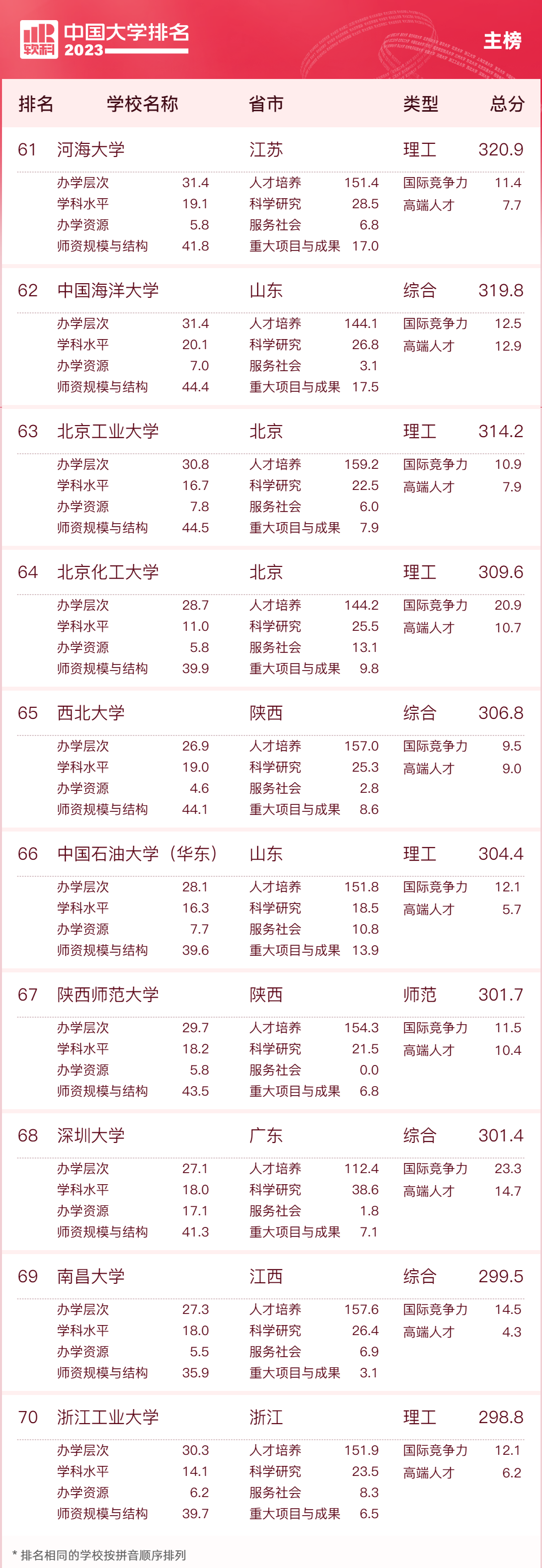 以下是中国大学排名最新排名表(前十、前十100名、前500强)