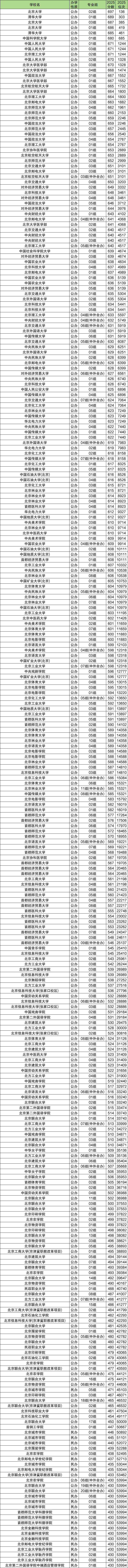 2025年北京各个大学录取分数线表(293个院校专业组最低分):